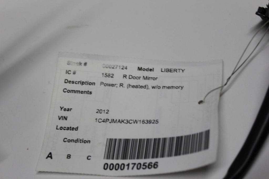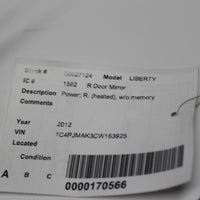 2008-2012 JEEP LIBERTY RIGHT PASSENGER POWER SIDE VIEW MIRROR