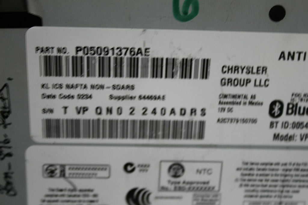 2015-2016 Chrysler 200 Radio Stereo Uconnect Display Screen P05091376AE + Code