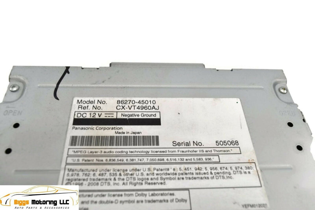 2011-2014 TOYOTA SIENNA REAR ENTERTAINMENT SYSTEM DVD PLAYER 86270-45010 67002
