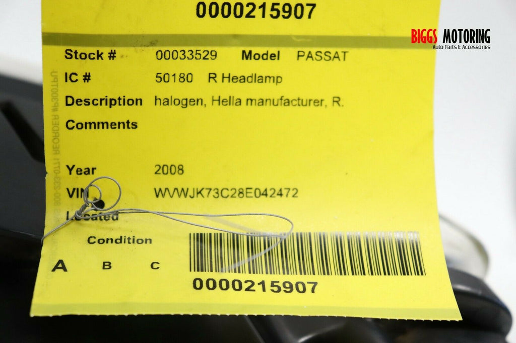 2006-2010 VW Passat Passenger Right Side Front Head Light Lamp 33529