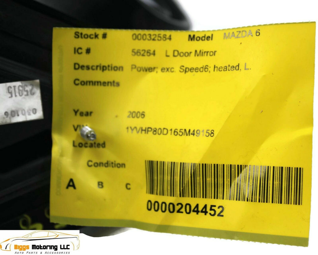 2003-2008 Mazda 6 Driver Left Side Power Door Mirror Black 325584/ 28889