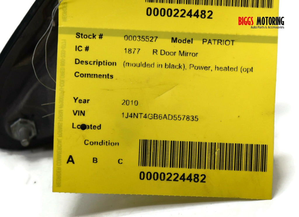 2007-2012 Jeep Patriot Passenger Right Side Power Door Mirror Black 35527