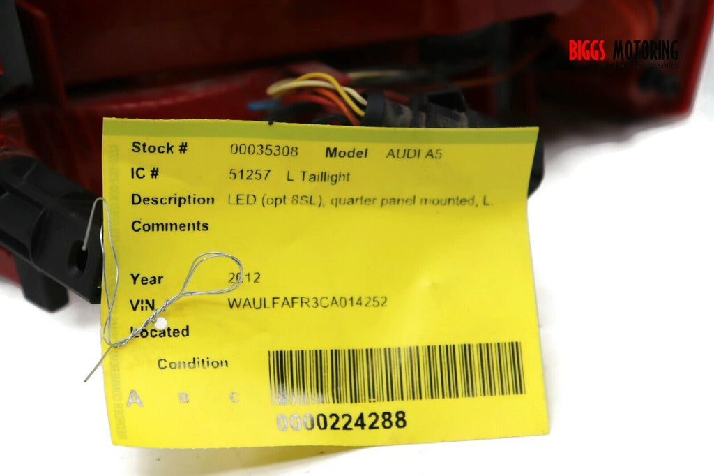 2008-2012 Audi A5 Driver Left Side Rear Tail Light 35308