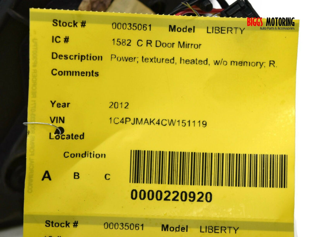 2008-2012 Jeep Liberty Passenger Right Side Power Door Mirror Black 35061