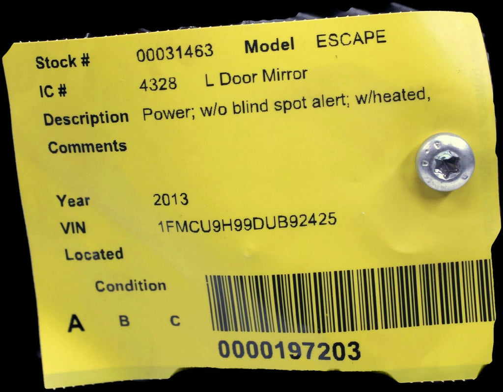 2013-2016 Ford Escape Driver Left Side Power Door Mirror Black 31463