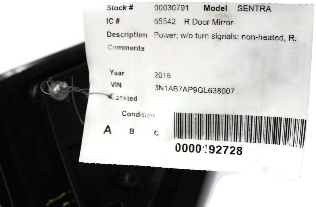 2013-2016 Nissan Sentra Passenger Right Power Door Mirror Gray 30791
