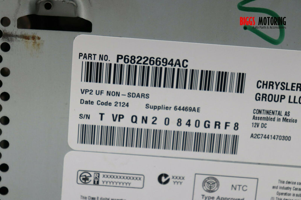 2015-2016 Chrysler 200 Dash Radio Display Screen P68226694AC