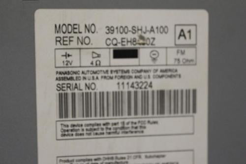 Honda Odyssey Xm Radio Stereo Am/Fm Cd Player 6 Disc Changer 39100-Shj-A100